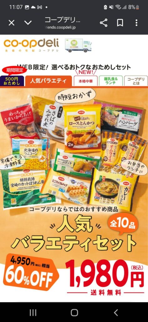 コープデリでは、新規加入を検討している方向けに、時期や地域によってさまざまな「お試しセット」が用意されていることがあります。